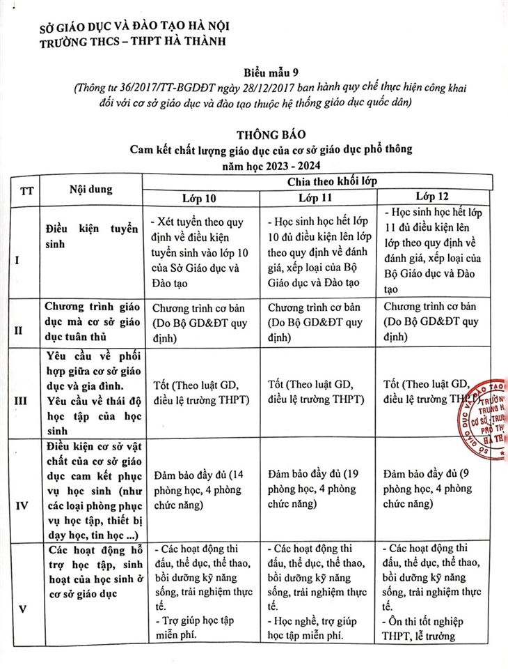 Ø Thông báo cam kết chất lượng giáo dục của cơ sở giáo dục phổ thông năm học 2022-2023