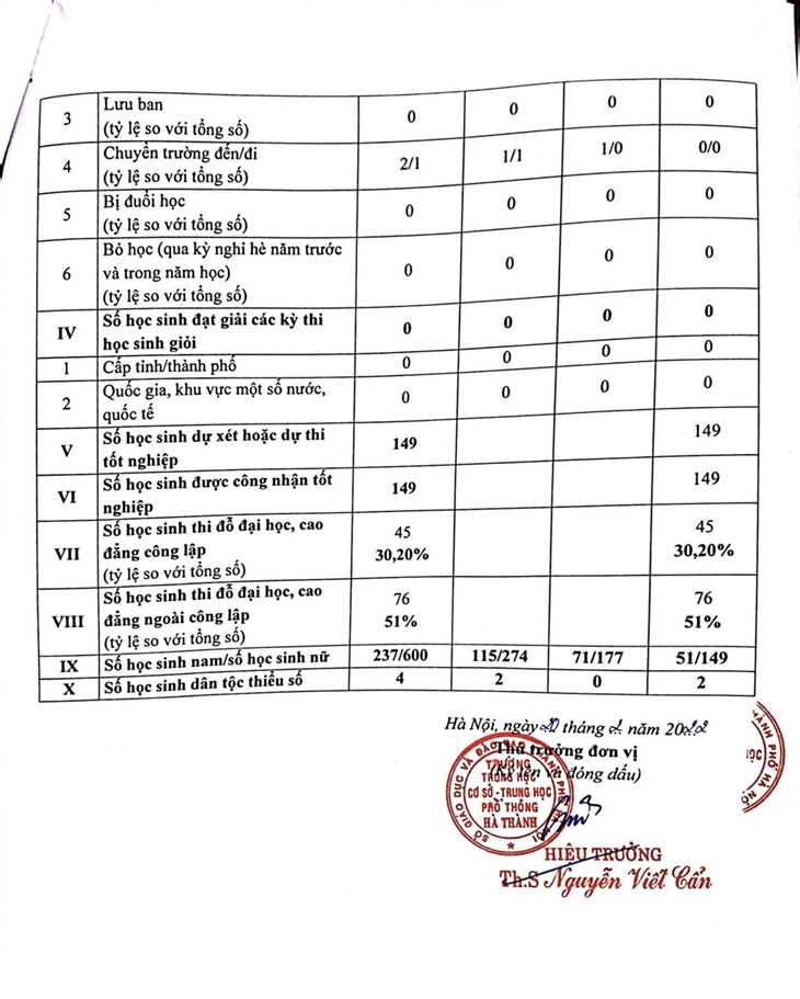 Ø Thông báo về các khoản thu đầu năm các lớp THCS - THPT Hà Thành