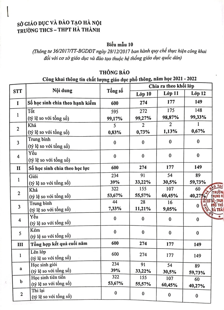 Căn cứ kế hoạch năm học và để học sinh, phụ huynh nắm được các thông tin cần thiết, trường THCS-THPT Hà Thành xin trân trọng gửi một số thông báo. Cụ thể như sau: