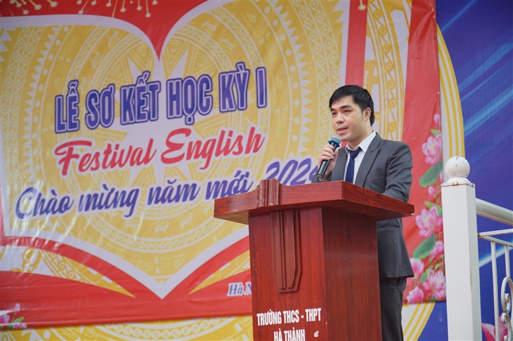 Bên cạnh đó, thầy Nguyễn Viết Cẩn - Hiệu trưởng nhà trường cũng đã có bài phát biểu, tổng kết và ngợi khen những tiến bộ của thầy và trò trường Hà Thành trong học kì 1 cũng như động viên, chia sẻ mong ước của thầy về sự phát triển vững mạnh hơn của nhà trường trong tương lai.