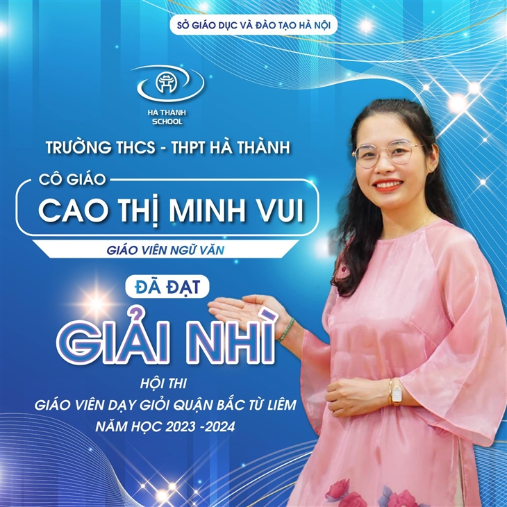 Trường THCS - THPT HÀ THÀNH vinh dự có 3 thầy cô tham gia dự thi Hội thi giáo viên giỏi quận Bắc Từ Liêm năm học 2023-2024 và đã đạt những thành tích rất xuất sắc : 1 giải nhất và 2 giải nhì.