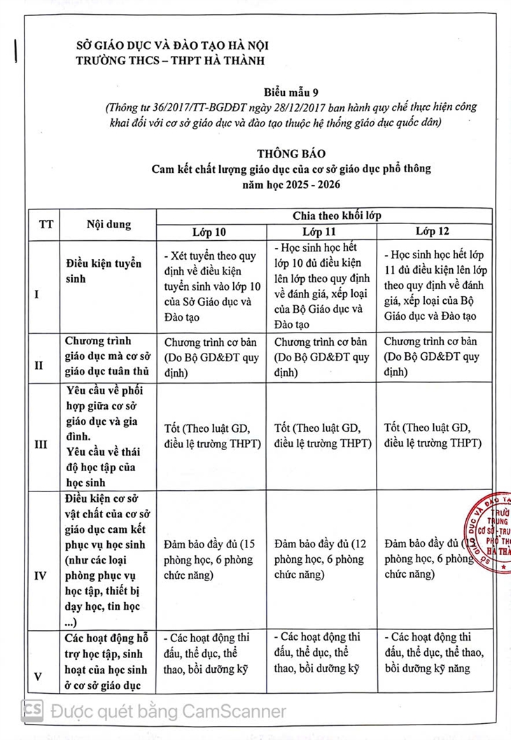 Căn cứ kế hoạch năm học và để học sinh, phụ huynh nắm được các thông tin cần thiết, trường THCS-THPT Hà Thành xin trân trọng gửi một số thông báo. Cụ thể như sau: