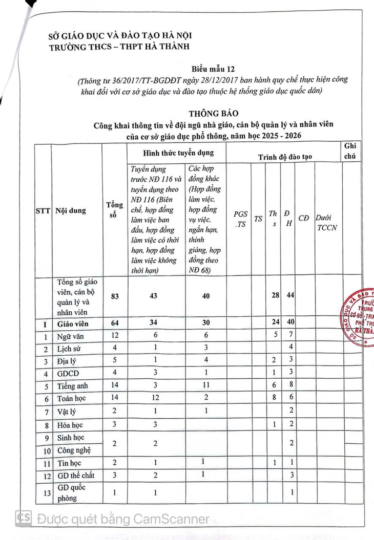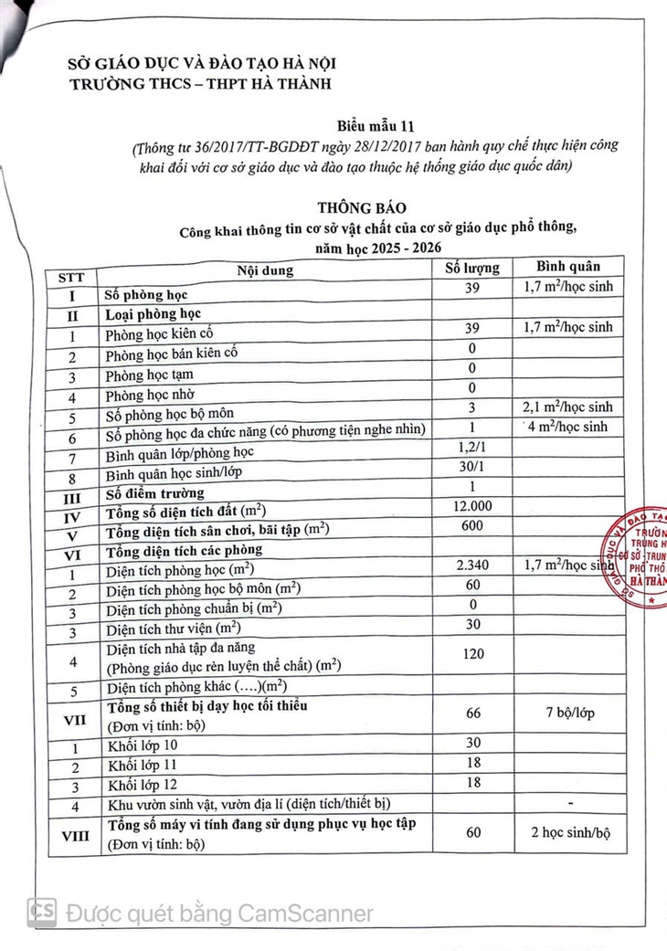 Căn cứ kế hoạch năm học và để học sinh, phụ huynh nắm được các thông tin cần thiết, trường THCS-THPT Hà Thành xin trân trọng gửi một số thông báo. Cụ thể như sau: