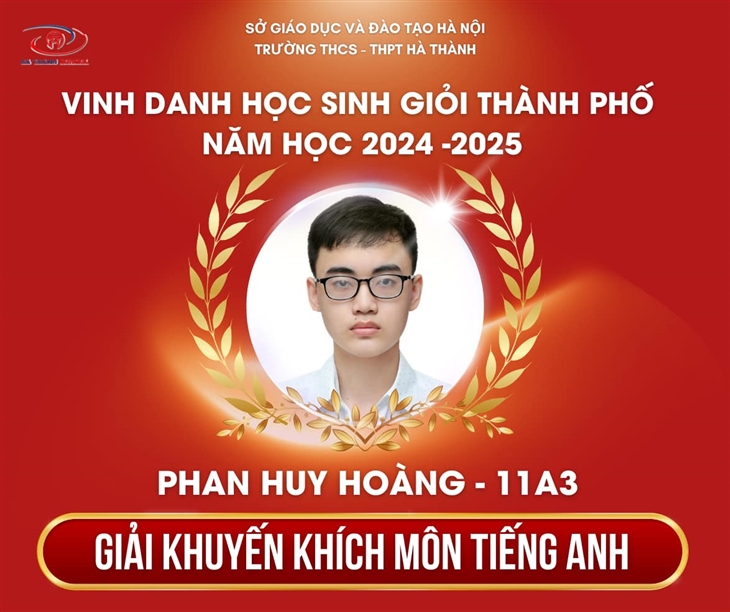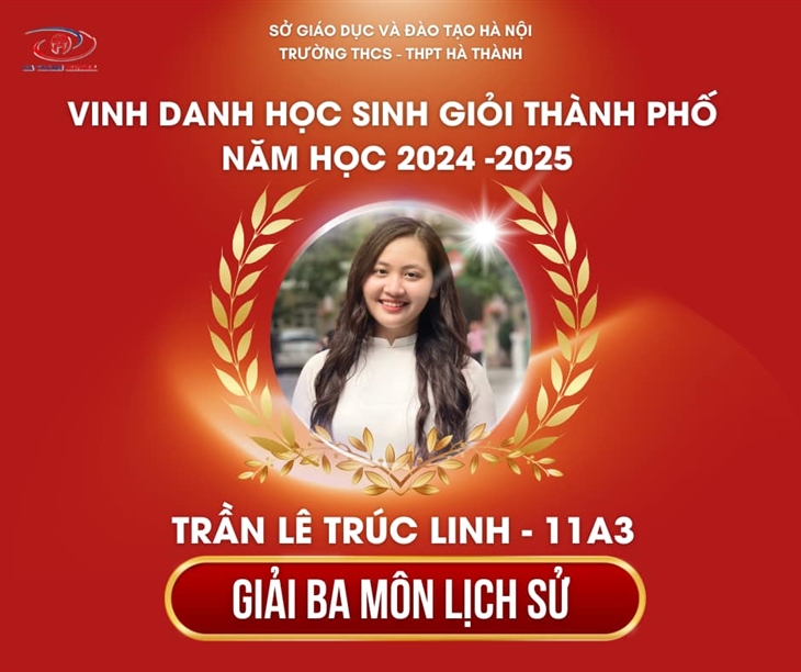 Trường THCS - THPT Hà Thành hân hoan chúc mừng các em học sinh đã đạt thành tích cao trong Kỳ thi Học sinh giỏi cấp thành phố Hà Nội các môn văn hóa lớp 12 năm học 2024-2025. Đây là một trong những kỳ thi quan trọng, đòi hỏi kiến thức chuyên sâu và sự nỗ lực không ngừng của các em cùng sự dìu dắt tận tâm của các thầy cô giáo, sự quan tâm của ban lãnh đạo nhà trường, sự đồng hành khăng khít của quý phụ huynh